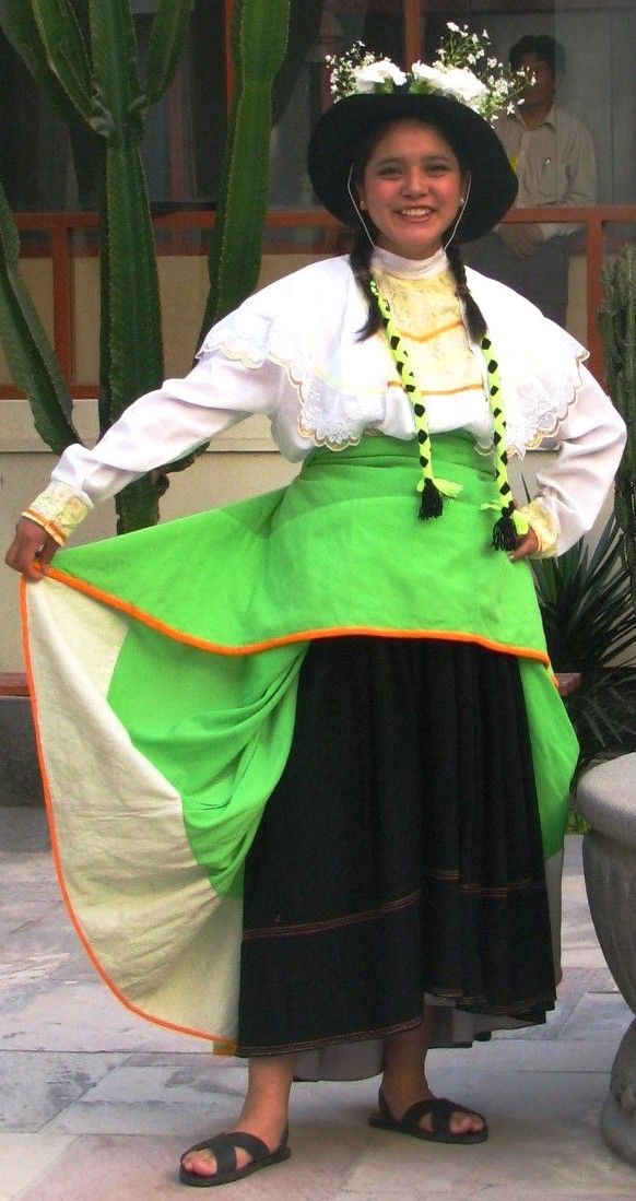 Visten una pollera negra, sobre ella llevan una pollera de color rojo, ambas sujetas por una faja tejida, angosta y multicolor terminadas en borlas que dan colorido al atuendo. La pollera roja se recoge delante de tal manera que puede verse la pollera negra interior, generándose un hermoso contraste.