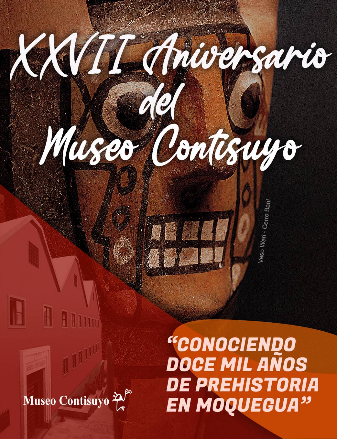 Este año el Museo Contisuyo cumple veintisiete años de trabajo promoviendo la cultura, mostrando a la población moqueguana y sus visitantes doce mil años de prehistoria, fruto de los trabajos de investigaciones arqueológicas que se dieron durante los años ochenta con el entonces llamado Programa Contisuyo y otros proyectos que se desarrollaron en nuestra región.