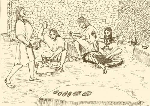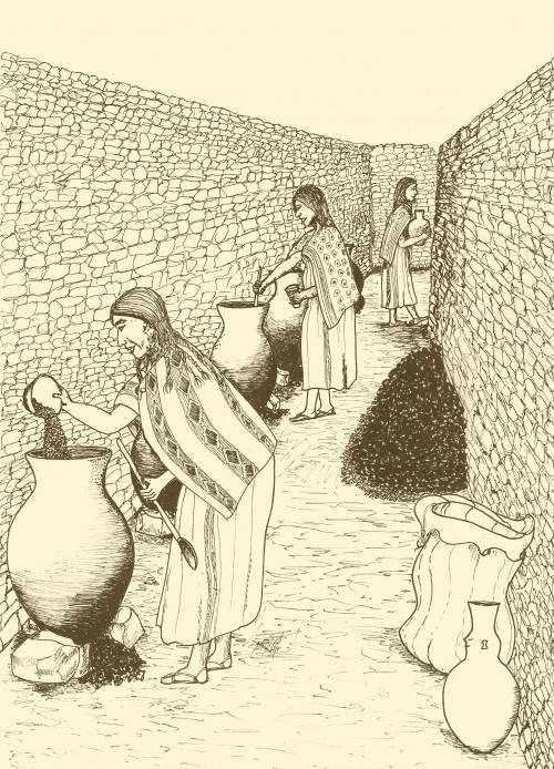 Un centro de producción reconocido y excavado fue denominado “la Chichería”, ubicada cerca del templo en forma de D. La Chichería es una estructura donde se registra huellas de fogones y pisos con piedras verticales para sostener urnas en donde se elaboraba la chicha, como también alimentos que eran ofrecidos a la élite.