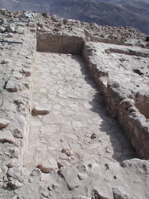 En el sector Este del cerro se identificó un complejo ceremonial aislado con orientación hacia el volcán Picchu Picchu de Arequipa. Sobre la plataforma de este se registraron ofrendas quemadas in situ, lo que indicó que fue un espacio para actos rituales.